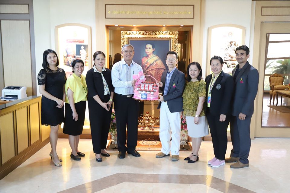 January 6, 2020 - General Affairs Division, The Office of the President, led by Acting Director, Office of the President presides Asst.Prof.Dr.Komon Paisal together with staff bring gift baskets to Vice President for Planning and Quality Assurance Assoc.Prof.Dr.Witthaya Mekhum on the occasion of Happy New Year 2020.