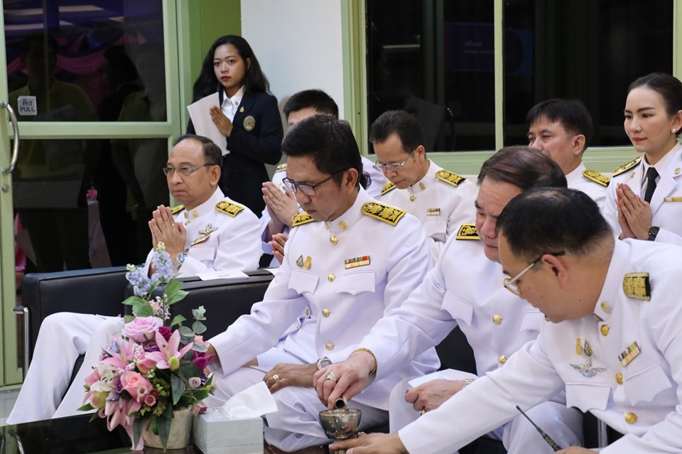 October 11, 2019 - On behalf of Suan Sunandha Rajabhat University, led by the President, Assoc.Prof.Dr.Luedech Girdwichai holds the grand merit-making on King Bhumibol Adulyadej Memorial Day in remembrance of His Majesty the late King Bhumibol Adulyadej at Health and Sports Building. Approximately 200 people were present in the ceremony, including executives, faculty members, officials, and students.