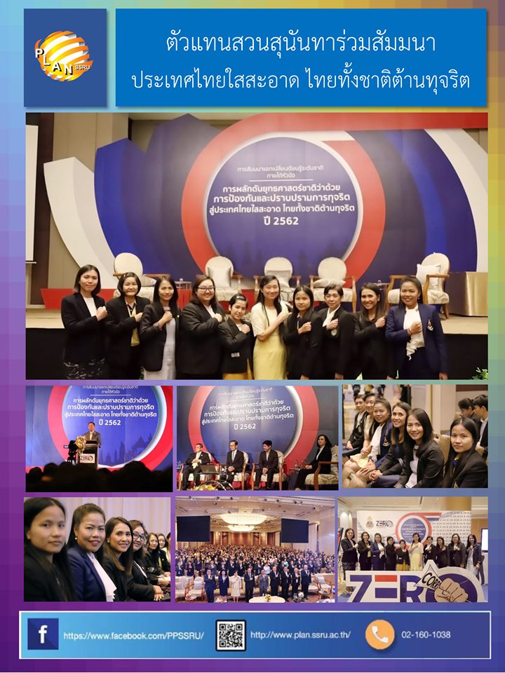 On Aug 19, 2019 at Miracle Grand Convention Bangkok. The delegates from SSRU join in “Thailand Road map to anti corruptions Seminar”. After opened the seminar in the morning. Have special Lecture in subject “Strategy of Thailand in protection and suppression of corruption. In the afternoon is practicing group activity and the delegates join in “Strategy 2 enhance the Political will in protection and suppression of corruption”.