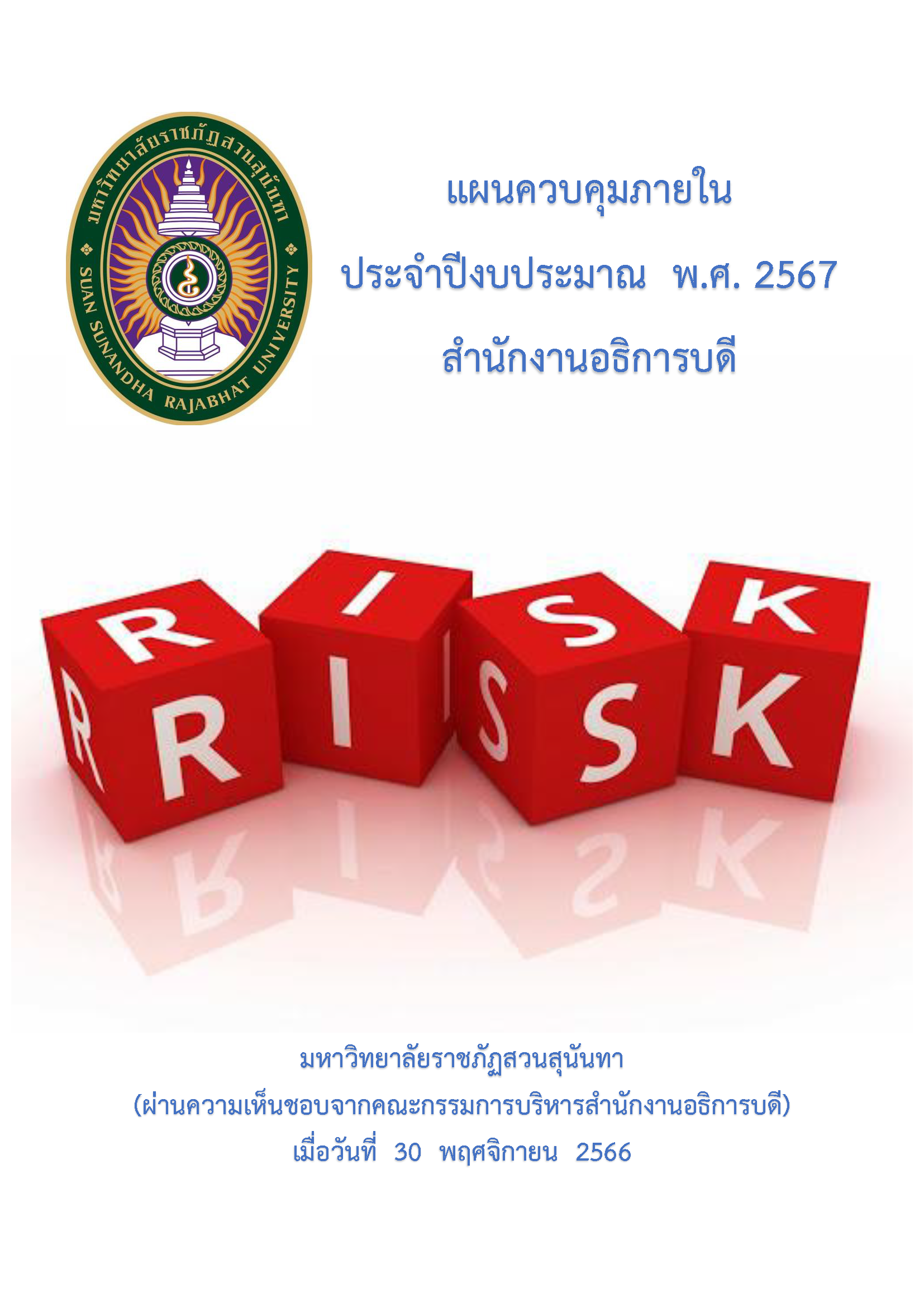 Download >>> แผนควบคุมภายใน สำนักงานอธิการบดี ประจำปีงบประมาณ พ.ศ 2567.pdf--------------------------------------------------------------------------------------www.president.ssru.ac.thwww.ssru.ac.th