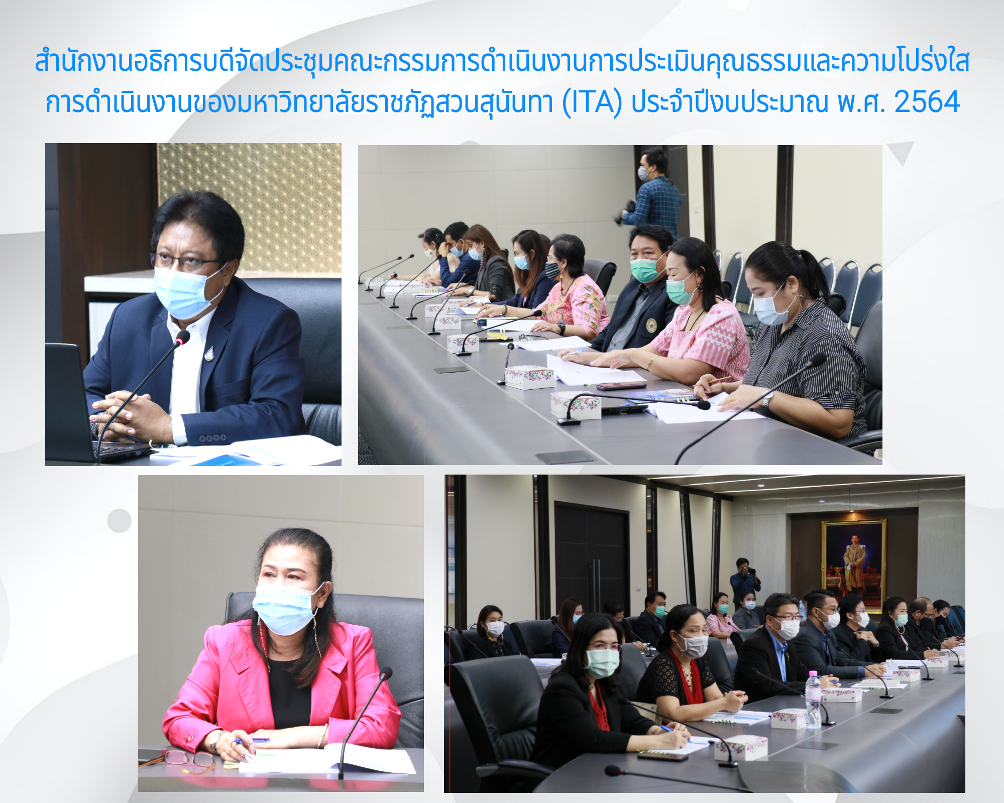 เมื่อวันที่ 2 กุมภาพันธ์ 2564 นางจุณีรัตน์ จันทร์นิตย์ รักษาการในตำแหน่งผู้อำนวยการสำนักงานอธิการบดี เข้าร่วมประชุมคณะกรรมการดำเนินงานการประเมินคุณธรรมและความโปร่งใสการดำเนินงานของมหาวิทยาลัยราชภัฏสวนสุนันทา (ITA) ประจำปีงบประมาณ พ.ศ. 2564 โดยมีผู้ช่วยศาสตราจารย์ ดร.ปรีชา พงษ์เพ็ง รองอธิการบดีฝ่ายบริหาร เป็นประธานในการประชุม การประชุมในครั้งนี้จัดขึ้นเพื่อสร้างความเข้าใจและเตรียมความพร้อมสำหรับการประเมินในปีงบประมาณ พ.ศ. 2564