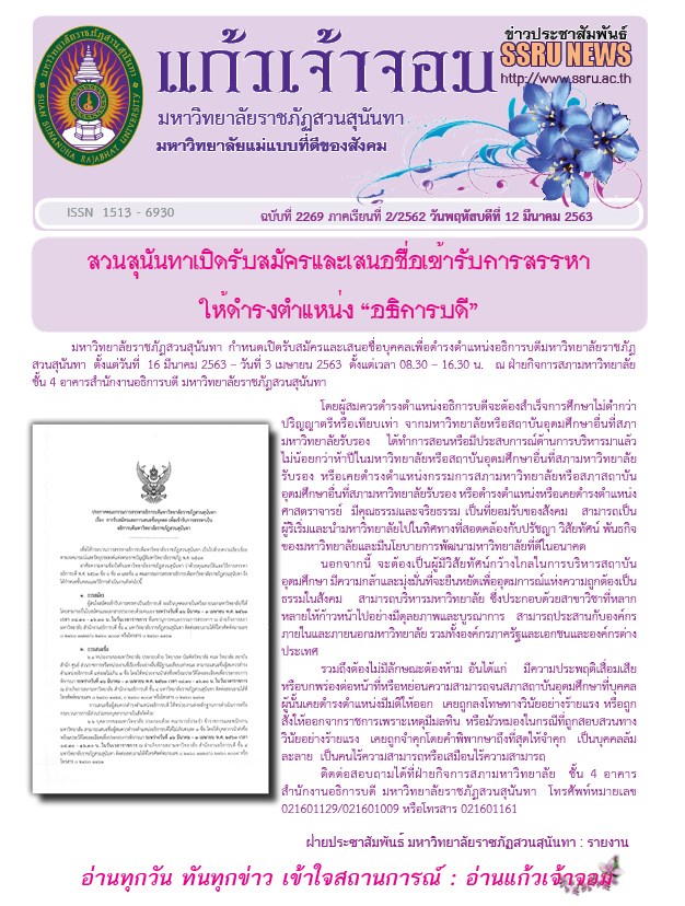> ข่าวแก้วเจ้าจอม ฉบับที่ 2269 ประจำวันที่ 12 มีนาคม 2563