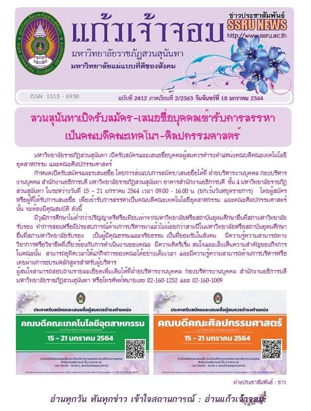 > ข่าวแก้วเจ้าจอม ฉบับที่ 2412 ประจำวันที่ 18 มกราคม 2564